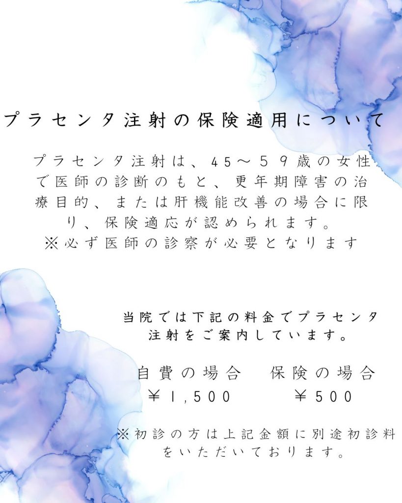 当院ではプラセンタ注射 を行っております。 お気軽にご相談ください。